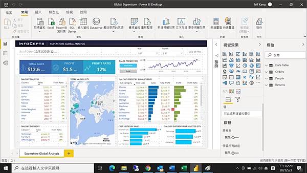 本集接著介紹如何利用模版,您可以用自己製作的報告,或下載現有的報告,來當作模板。網路上有很多人提供了Power BI的報告檔(.pbix檔),而且有些視覺效果非常令人驚艷,我們可以加以利用。由於每個報告檔匯入的資料源不同,可能是本機檔案、各式資料庫、甚至是網頁,這裏先示範比較簡單的形式:單一excel檔(4個工作表)。其它形式牽涉到路徑的更改,以後有機會再說。我們回到上集介紹最受歡迎模板的其中1個,Global Super Store(全球超級商店):https://community.powerbi.com/t5/Data-Stories-Gallery/Global-Super-Store/td-p/627564